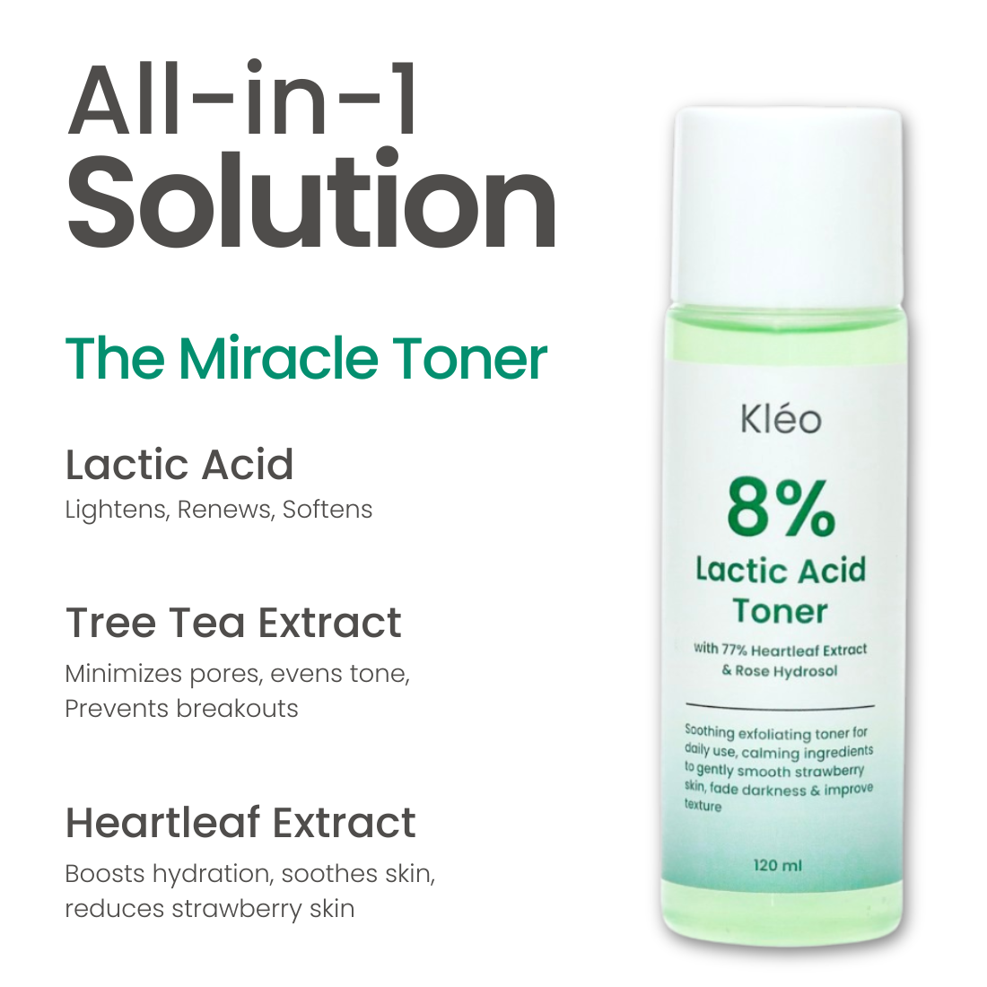 Put an end to all skin problems! This 8% Lactic Acid Toner is powered with 77% Heartleaf Extract and Rose Hydrosol to calm, exfoliate, and transform your skin in one simple step🌿 It gently resurfaces rough, bumpy texture, fades dark patches, unclogs pores, and smooths out strawberry skin without irritation! ✨ No more razor bumps, no more dullness. This isn’t just a Toner! It’s an all-in-one solution for every skin concern 💧