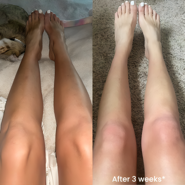 Gently fades darkness on elbows, knees, feet & underarms